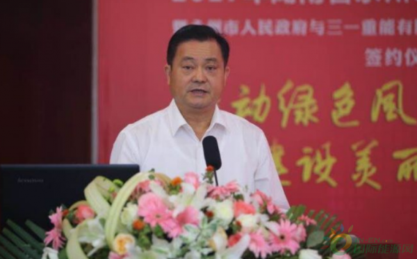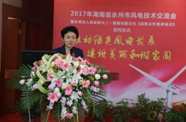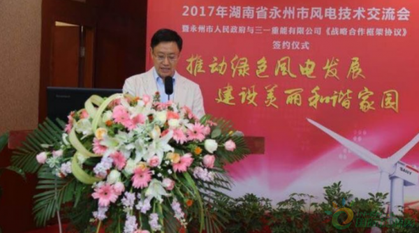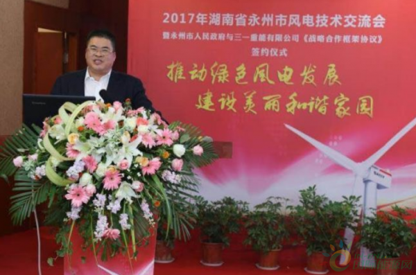 永州市委書(shū)記、市人大常委會(huì)主任李暉出席并講話,永州市委副書(shū)記、市長(zhǎng)易佳良致辭,三一集團(tuán)董事、三一重能董事長(zhǎng)周福貴致辭,湖南省能源局副局長(zhǎng)吳波,三一集團(tuán)董事、三一重能副董事長(zhǎng)毛中吾出席。永州市副市長(zhǎng)嚴(yán)興德主持簽約儀式。