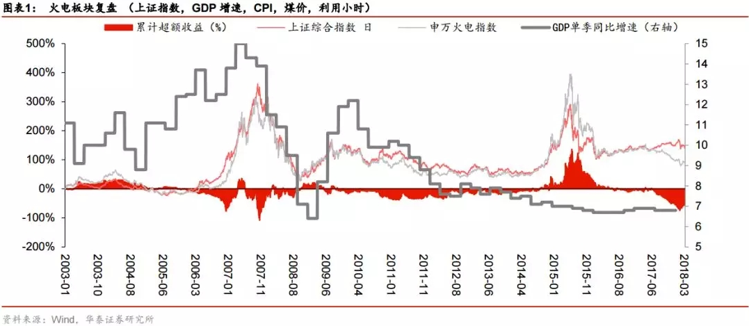 2011 和 2014 的商品價格都是前高后低,不同之處在 2011 的通脹和 2H14 的流動性充裕,權(quán)益市場結(jié)果就是 2011的全面熊市和 2H14開啟的大牛市。具有相同點(diǎn)的是,在利用小時緩跌疊加煤價大幅下跌的情況下見證了火電的超額收益: