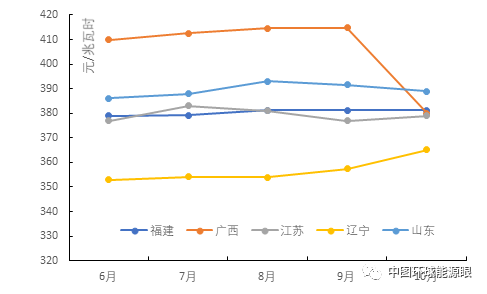 山東成交電價(jià)389元/兆瓦時(shí),環(huán)比下降0.64%;成交電量4.48億千瓦時(shí),環(huán)比增長(zhǎng)13.58%,全部為售電公司成交電量。