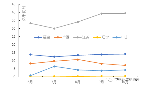 圖 2重點(diǎn)地區(qū)2018年6-10月月度集中競(jìng)價(jià)交易的成交電量