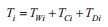 充電時(shí)間成本Ti包括3部分:充電汽車在路上行駛的時(shí)間TDi、需要等待前序充電汽車結(jié)束的排隊(duì)時(shí)間TWi 以及充電實(shí)用時(shí)間TCi。其中,TDi直接調(diào)用地圖軟件計(jì)算出的預(yù)計(jì)時(shí)間,以減輕系統(tǒng)運(yùn)算量。充電實(shí)用時(shí)間TCi如下式所示: