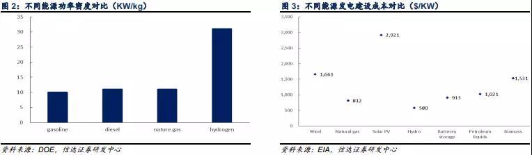 可以看到氫能源在功率密度、成本方面具有優(yōu)勢(shì),同時(shí)兼具環(huán)境友好性,其應(yīng)用前景十分廣闊。