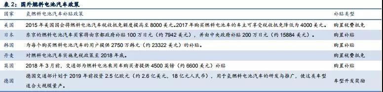 從補(bǔ)貼力度看,各國(guó)補(bǔ)貼力度波動(dòng)幅度較大。美國(guó)和英國(guó)補(bǔ)貼在5000美元/輛上下,日韓則給予消費(fèi)者22000美元/輛左右的補(bǔ)貼。這也是日韓在燃料電池汽車領(lǐng)域技術(shù)領(lǐng)先的原因之一。