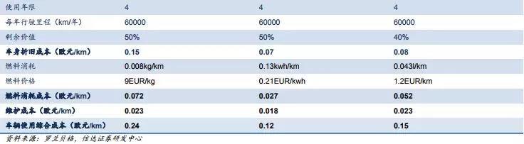 根據(jù)羅蘭貝格提供的燃料電池汽車的數(shù)據(jù)測(cè)算,歐洲市場(chǎng)燃料電池小汽車的綜合使用成本達(dá)到0.24歐元/km,高于純電動(dòng)和柴油汽車的綜合使用成本。因?yàn)闅錃獬鍪蹠r(shí)會(huì)考慮氫氣制備、運(yùn)輸以及加氫站建設(shè)、運(yùn)營(yíng)等成本,所以氫氣價(jià)格里面包含了這些相關(guān)配套設(shè)施的成本。因此這一成本就是氫能源以燃料電池形式應(yīng)用到小汽車上的全成本。