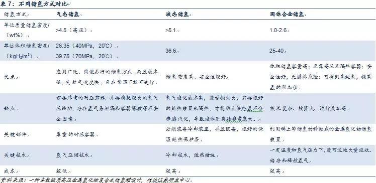氣態(tài)儲(chǔ)氫是目前主流的儲(chǔ)氫方式。氣態(tài)儲(chǔ)氫最大的優(yōu)點(diǎn)是使用方便,儲(chǔ)存要求條件易滿足,成本低。液態(tài)儲(chǔ)氫需要先提供極低的溫度,之后儲(chǔ)存的容器還必須采用雙層真空隔熱結(jié)構(gòu),液態(tài)氫沸點(diǎn)低,僅為20.38K(-253℃),氣化潛熱小,僅0.91kj/mol,罐內(nèi)液氫和外界存在巨大的溫度差,一旦隔熱工作沒(méi)做好,液氫將大規(guī)模沸騰揮發(fā)損失,目前的技術(shù)只能保證液氫每天1%-2%的揮發(fā),作為對(duì)照,汽油每月只損失1%。固體合金儲(chǔ)氫可以做到安全、高效、高密度,不僅可以在表面吸附氫分子,還可以在一定溫度和壓力下讓氫分子分解成為氫原子,進(jìn)入合金的八面體或四面體間隙(金屬原子堆垛時(shí)形成的空隙),形成金屬化合物,可吸收相當(dāng)于儲(chǔ)氫合金體積1000-3000倍的氫氣,儲(chǔ)氫能力極其強(qiáng)大。常見(jiàn)的儲(chǔ)氫合金有鈦系合金、鋯系合金、鐵系合金、稀土系合金。其主要問(wèn)題在于儲(chǔ)存和釋放氫氣的過(guò)程主要是化學(xué)反應(yīng)的過(guò)程,需要一定的溫度和壓強(qiáng)環(huán)境,使用不方便,同時(shí)儲(chǔ)氫合金一般成本較高。