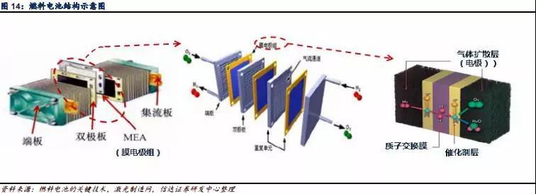 氫能源燃料電池是氫能源清潔高效利用的核心,同樣也是整條氫能源主產(chǎn)業(yè)鏈的核心所在。燃料電池主要由膜電極組(MEA)、雙極板、集流板、端板組成,其中膜電極組又是由質(zhì)子交換膜、催化劑、氣體擴(kuò)散層組成。