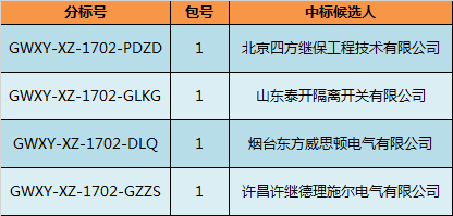 國(guó)網(wǎng)西藏電力2017年第二次配網(wǎng)設(shè)備協(xié)議庫(kù)存貨物招標(biāo)活動(dòng)中標(biāo)候選人結(jié)果:
