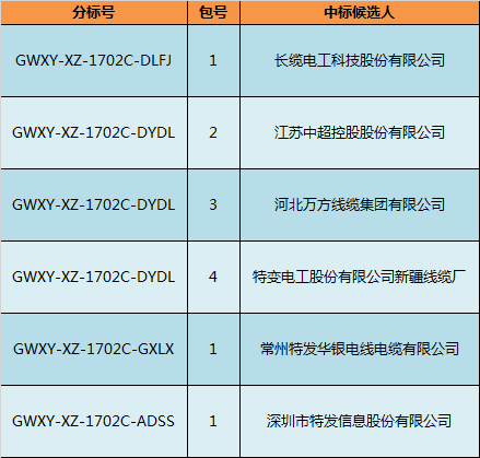 國(guó)網(wǎng)西藏2017年第二次配網(wǎng)設(shè)備/線材協(xié)議庫(kù)存貨物招標(biāo)中標(biāo)候選人